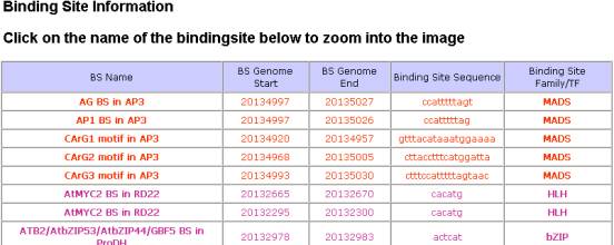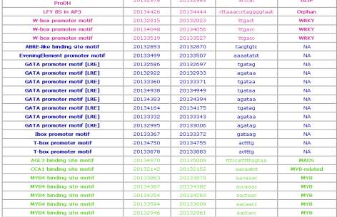 predicted promoters from AGRIS. The promoter sequence can be seen by click on